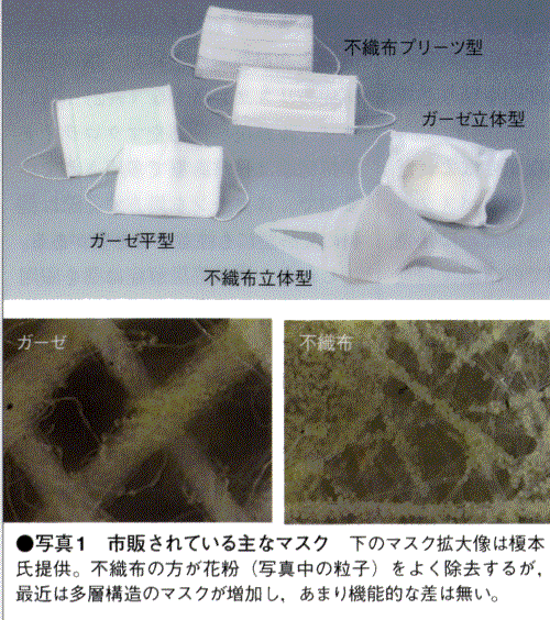 井手先生によると、実際に人間様にマスクをかけてもらって、鼻に吸い取られた花粉を調べたら、マスクのタイプによる格差はなかったと言っております。